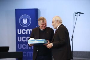 La ceremonia contó con la participación del Padre Tomás Scherz Take, doctor en Filosofía y ex Vice Gran Canciller de la Pontificia Universidad Católica de Chile, quien dictó la clase magistral “La reflexión cotidiana en una universidad católica”, centrada en el valor del pensamiento crítico y el diálogo en la formación académica.